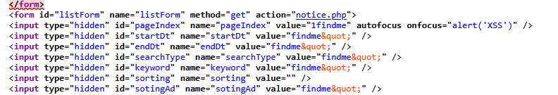 With that idea in mind, I tested out the following basic Reflected XSS payload: findme" autofocus onfocus="alert('XSS'). The underlying idea here was to prematurely close the existing value attribute and then inject a new attribute into the element. By using autofocus together with an onfocus event, the payload ensures that the browser automatically triggers the malicious code as soon as the page is parsed, without requiring any user interaction (a zero-click trigger). As it turned out to be not working as expected