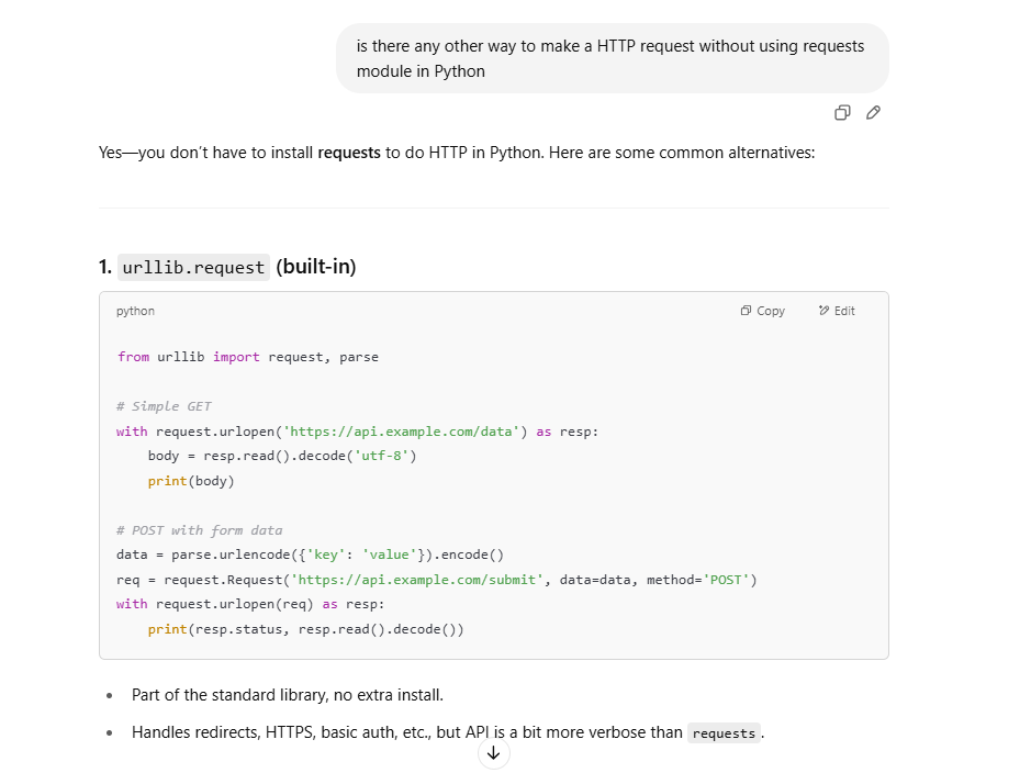 => Lỗi xử lý file: No module named 'requests' =)) likely the server environment doesn’t have requests installed. So we need a way that doesn’t rely on extra packages. Ideally something from the Python standard library.