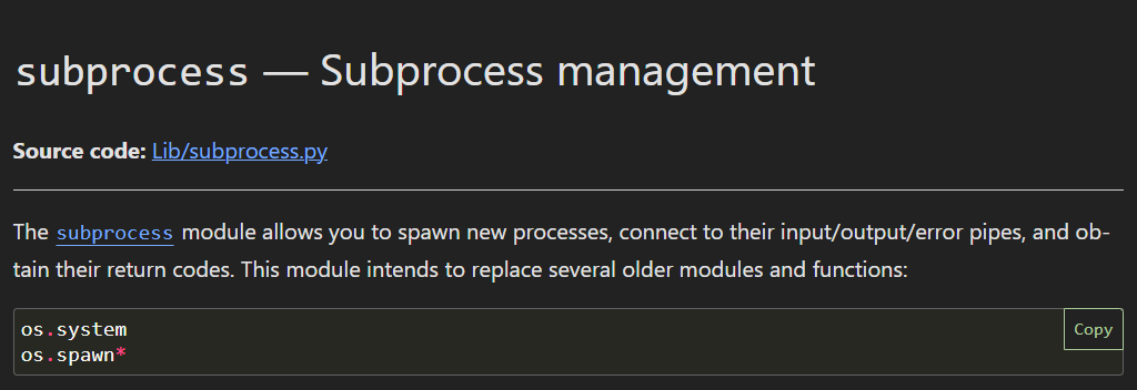 => Dead end. I looked for another way with the same idea and landed on Python’s standard subprocess module. It’s designed to run subprocesses and capture output easily. It’s basically a better os.system.