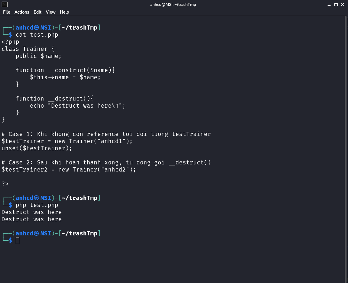 # Case 2: Sau khi hoan thanh xong, tu dong goi __destruct()